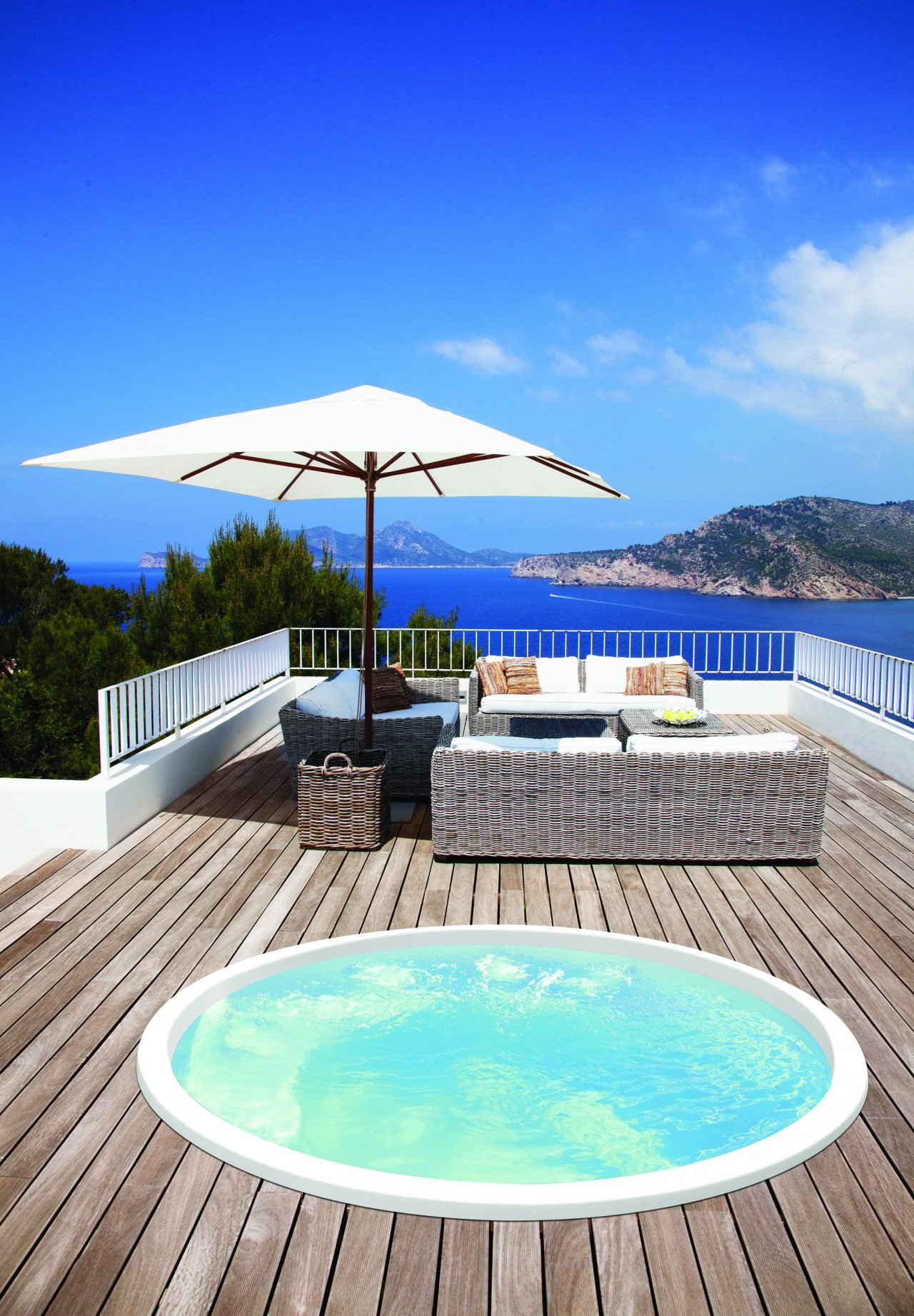 O Spa Ilha Bela é do tamanho certo para a sua diversão. O Spa possui bancos com hidromassagem e é ideal para pequenos ambientes. O modelo esta disponível nas cores azul e branca.